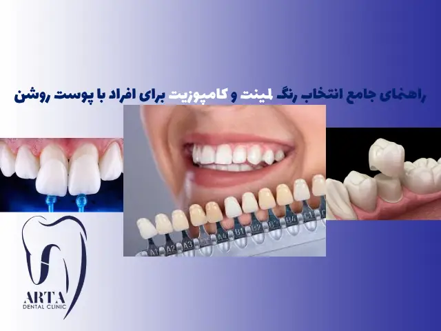 انتخاب رنگ مناسب لمینت و کامپوزیت برای افراد با پوست روشن تأثیر زیادی بر زیبایی لبخند دارد. تناژ پوست، رنگ چشم، رنگ مو، سن و سبک زندگی از عوامل مهم در انتخاب رنگ ایدهآل هستند. رنگهایی مانند BL1، BL2، A1 و B1 معمولاً برای پوستهای روشن مناسبترند. رعایت نکات مراقبتی نیز باعث حفظ رنگ و درخشندگی لمینت و کامپوزیت در طولانیمدت میشود. با انتخاب درست، میتوانید لبخندی درخشان، طبیعی و هماهنگ با چهره خود داشته باشید.